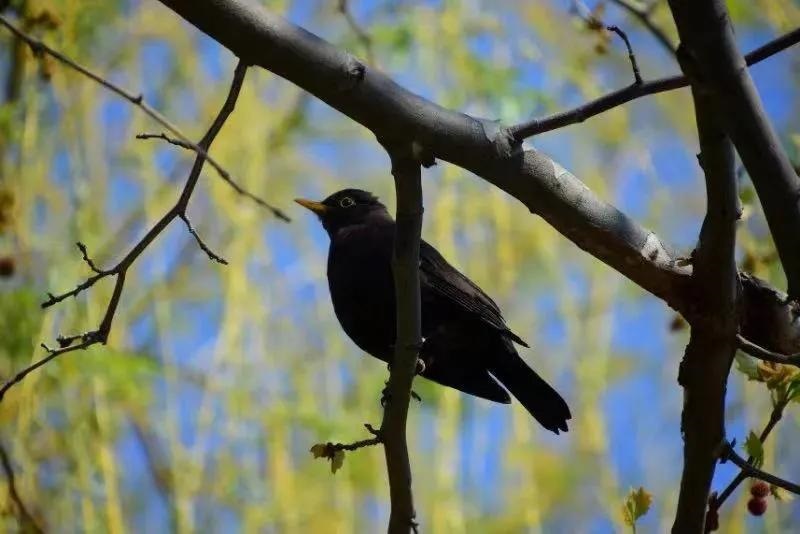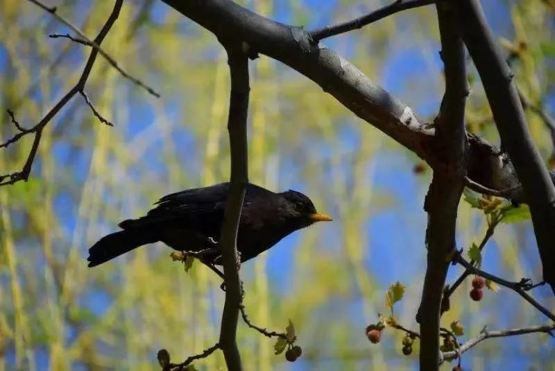 早樱吐蕊 鸟立枝头